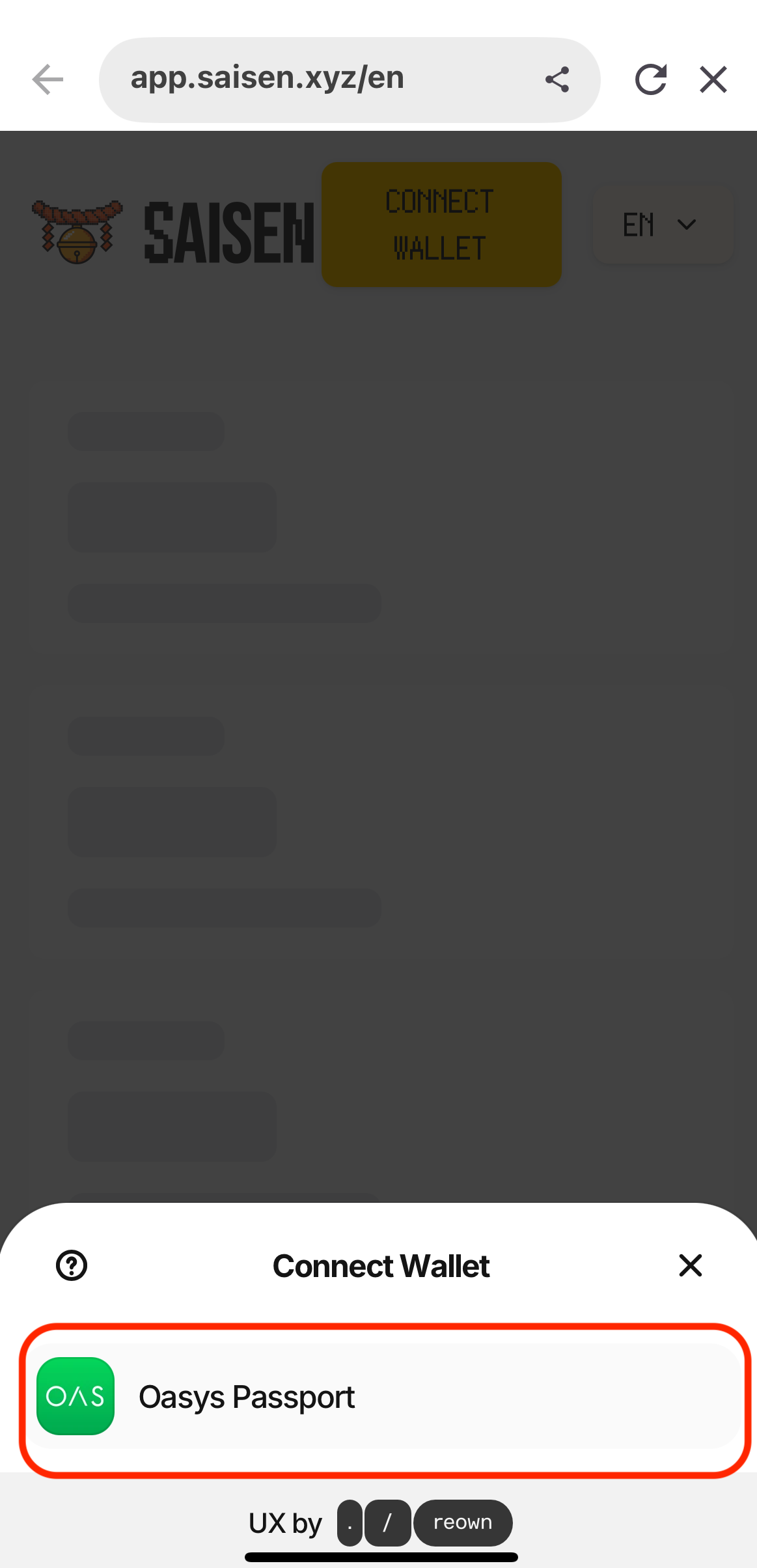 <figure><img src="https://1244242504-files.gitbook.io/~/files/v0/b/gitbook-x-prod.appspot.com/o/spaces%2FB261Y5a1Mtxt5AGn4M7d%2Fuploads%2FwHjnaP86TBwaOGd0FM07%2FSaisen%20on%20OasysPassport.png?alt=media&#x26;token=066c859f-5ea3-4386-b172-df51697bde7f" alt="" width="375"><figcaption></figcaption></figure>