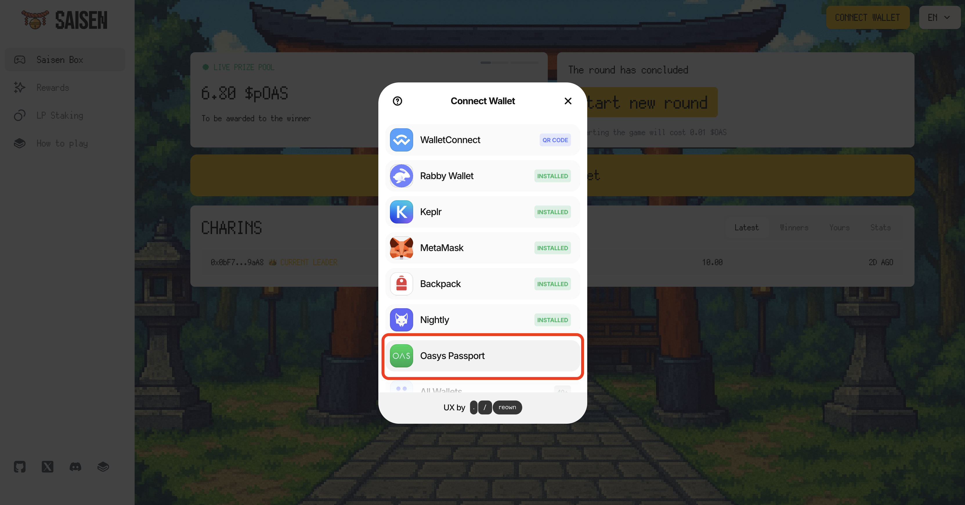 <figure><img src="https://1244242504-files.gitbook.io/~/files/v0/b/gitbook-x-prod.appspot.com/o/spaces%2FB261Y5a1Mtxt5AGn4M7d%2Fuploads%2FGmMLFA1u68rsSqmT3wKo%2FSaisen%20on%20Oasys%20Passport_2.png?alt=media&#x26;token=3a66d527-d7ed-47b7-b695-140b8e583968" alt="" width="375"><figcaption></figcaption></figure>