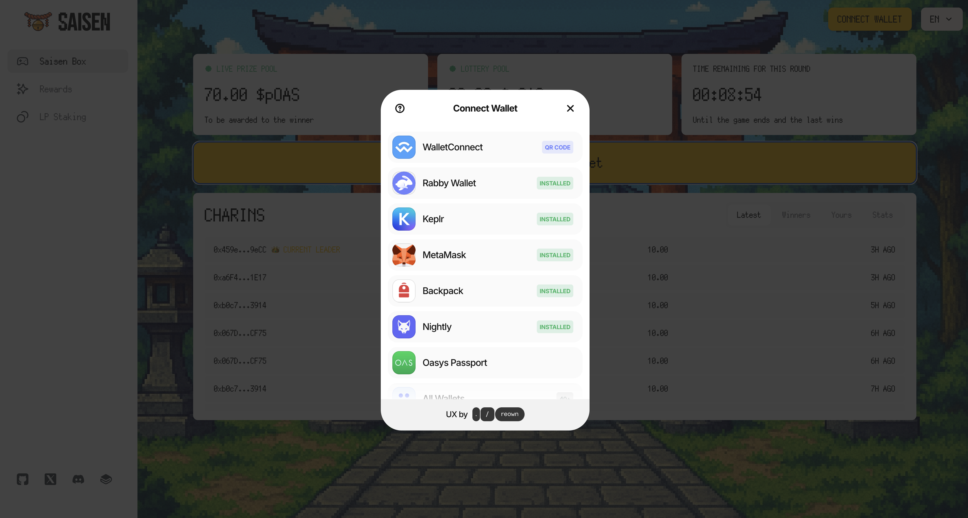 * Select a wallet that supports the Oasys L1 network (e.g. Metamask, Rabby, etc.).